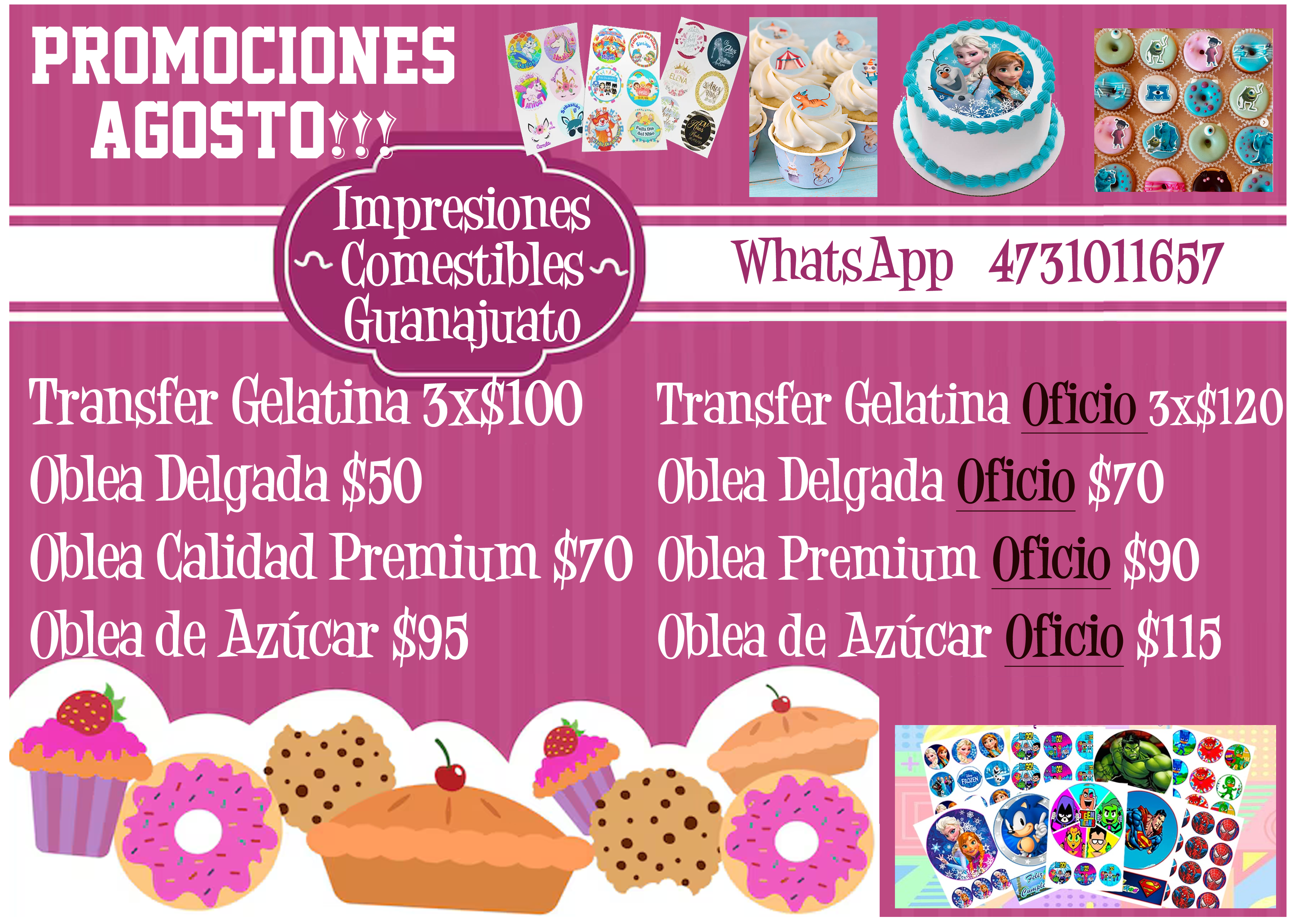 Impresiones 100% Comestibles en Oblea para Pasteles, Galletas, Cupcakes y Transfer para gelatinas. Imprimimos y Diseñamos cualquier idea que tengas. Estamos en Guanajuato, Gto.